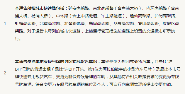 上海:符合規定的貨車可上高架通行(除法定節假日外)